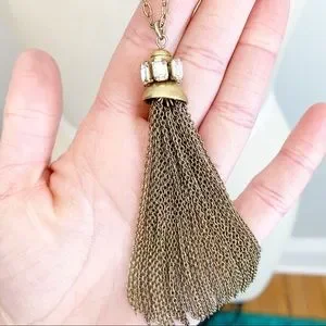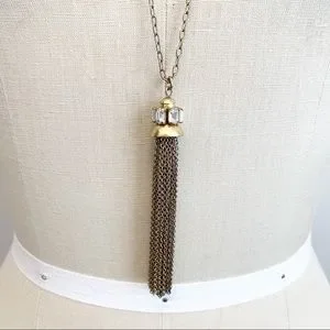 J Crew Long Gold Rhinestone Chain Tassel Necklace