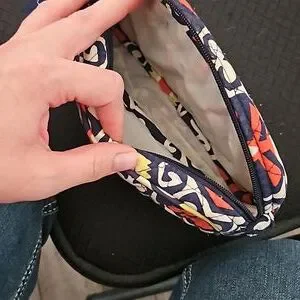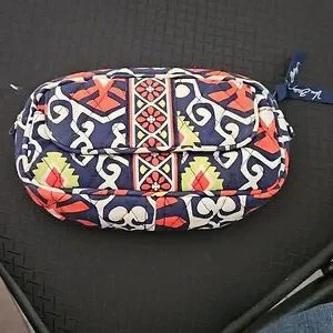 Vera Bradley makeup bag. Navy blue, white, orange and line green. Pre loved