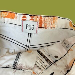 UO BDG Retro Beach Fringe Denim Shorts White Orange Blue Size 24