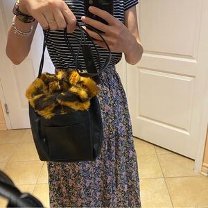 Worn once. Can be worn with the fur inside or outside. Great condition, only flaw is that you can see some balding in the pictures. The care tag explains it as a normal occurrence.