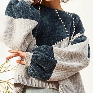 311. POL Last 1! chenille pearl bead sweater