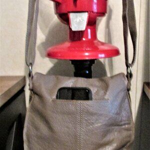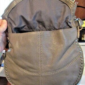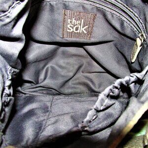 This Sak crossbody bag is buttery soft leather with an adjustable shoulder strap. It measures 9 inches wide and 10 inches tall. It has a fold over compartment that adds another 4 1/2 inches of use and closes with a sturdy zipper. It is in like new condition and does not show any wear of any kind.