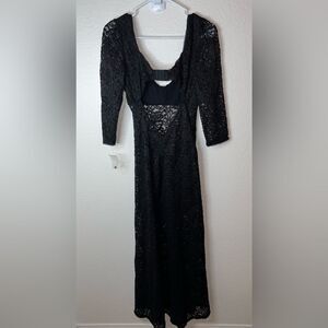 Turn heads in this stunning maxi dress featured in a lovely sheer lace fabrication with minimal lining, slightly puffed sleeves, and super exposed back for added dimension.