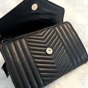 NWT Badgley Mischka Chevron Quilted Black Clutch/Crossbody with Gold Chain