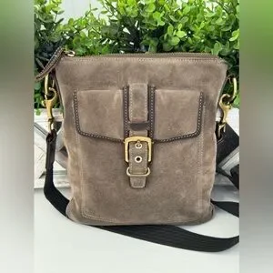 COACH VINTAGE Brown / Taupe Suede Hamilton Crossbody / Slingback Bag - EUC