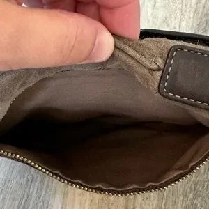 - Taupe colored suede exterior - Coach suede protector has been applied routinely