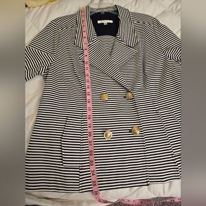 CAbi 823 Nautical Double Breasted Jacket Navy White Striped Jack size La…