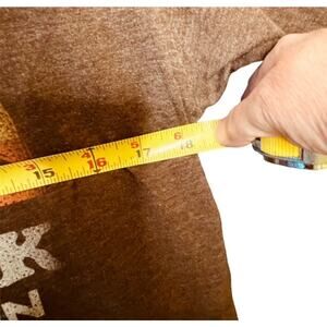 Brown unisex tshirt with Bigfoot Sasquatch distressed sunset graphic with "Hide & Seek World Champion". Good condition.
