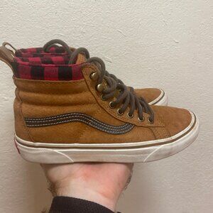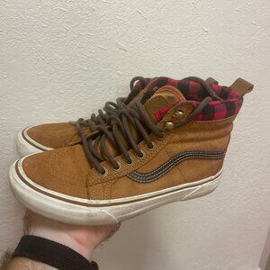 Vans Sk8-Hi MTE Men 5 Women 6.5 Scotchgard 3M Suede Glazed Brown Plaid Lined Red