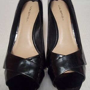 via spiga black Patent leather heels size 9 euc minor scratches not noticeable 3" heel, black, designed in Italy, great for special occasions.