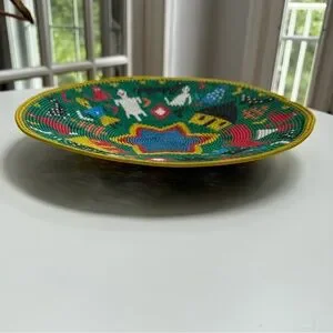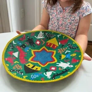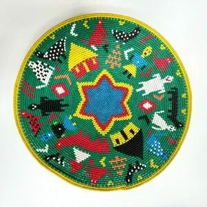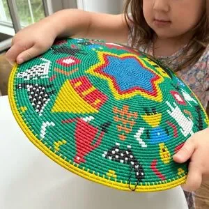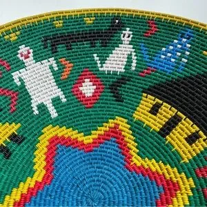 Made from telephone wire wrapped in the traditional coil method around a rigid hardwire, these baskets can only be made by the most experienced weavers. Inspired by life events and vivid imagination, the artistry of the weavers from KwaZulu-Natal, South Africa shines in these platters. May be gently washed with a mild dish detergent to clean.
