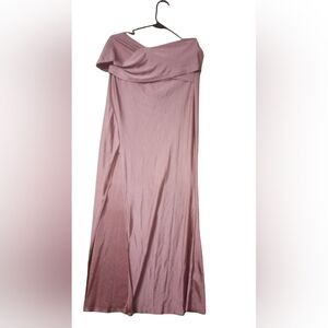 Dusty pink off shoulder satin dress with thigh slit size XL