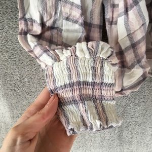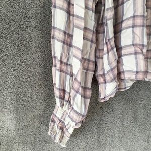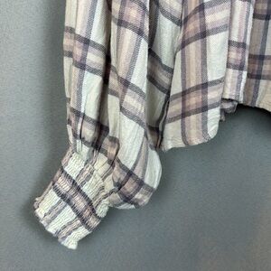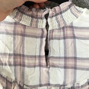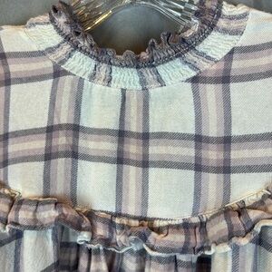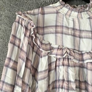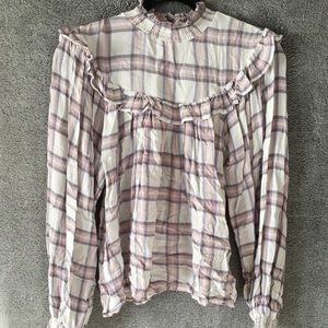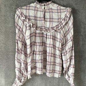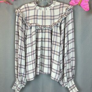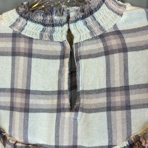 free People Plaid Ruffle Mock Neck Blouse- Sz Small