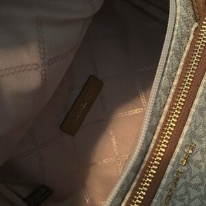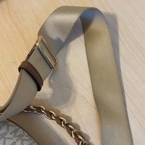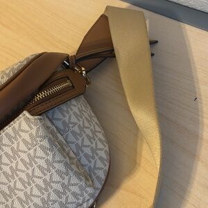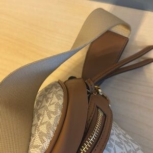 This cream /tan crossover is perfect for going shopping or traveling. Worn maybe four times. Great condition. Matching zipper wallet included.