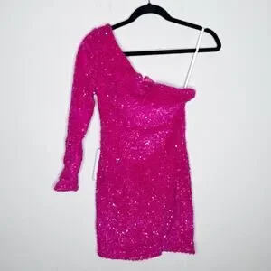 Berlinnova Sexy Glitter One-Shoulder Sequin Minidress Pink Size 4