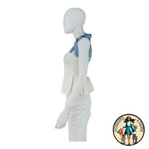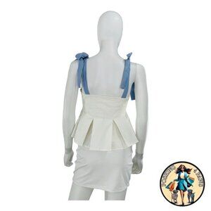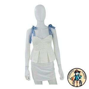 Hyacinth House NEW White and Blue Ophelia Bow Preppy Peplum Top Size L
