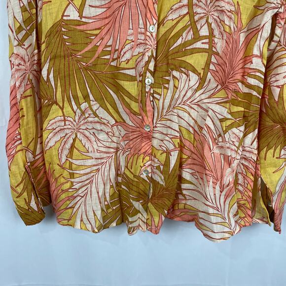 Tahari Women's 100% Linen Tropical Orange/Pink Long Sleeve Button Up Shirt Size M