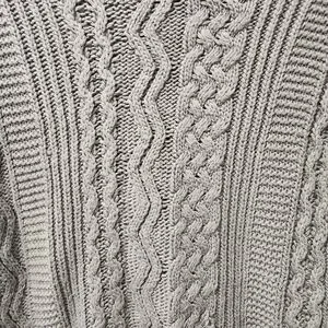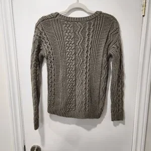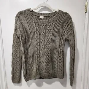 Greenish brown cable knit sweater. Crew neck with longsleeve.