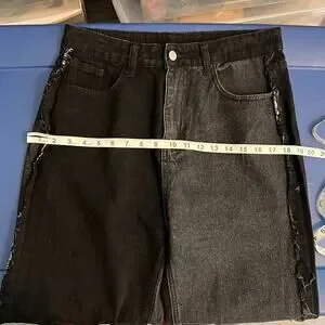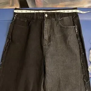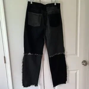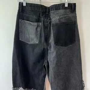 Shein 2 Tone Patch Distressed Black & Dark Denim Ultra High Rise Jeans