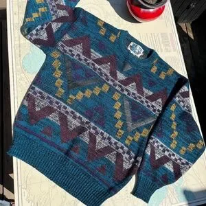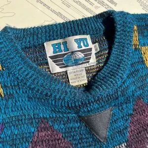 Vintage 90s Hi Yu Leather Trimmed Dad Sweater