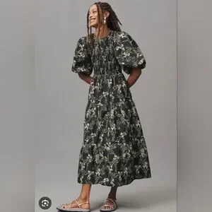 Sold out at Anthropologie! Brand New With Tags. figure flattering, comfortable fit perfect for fall! Has pockets and puffed sleeves are very comfortable -- don't have tight elastic on the arm. Feel free to ask questions! Dress is a floral black with grey, pale yellow and white design. I bought 2 sizes so that's the only reason I'm selling one. I love mine!