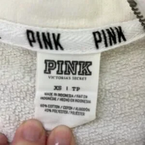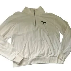 PINK Off-White Logo Animal Print Partial Zip Up Sweater
