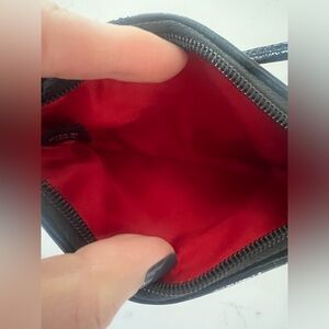 Coach Poppy Tartan Red Black Plaid Glitter Wristlet Black Patent Leather