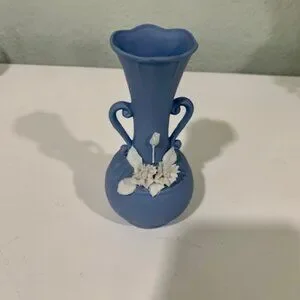 These unique green & blue vases are in great condition and stands about 5 & 7 inches high.