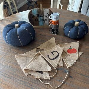 Five item fall thankful decorative home decor bundle. All items pre-owned and used for decoration. No rips, tears, holes or other issues.