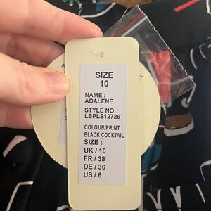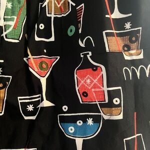 Lindy Bop Cocktail Print Black Swing Skirt, button down with front pockets, NWT