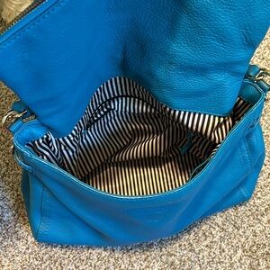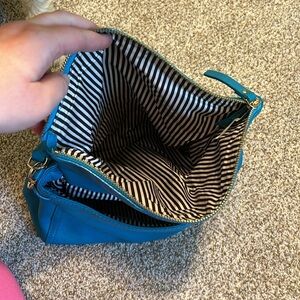 EUC Little Minka cobble hill. turquoise color. magnetic snap closer with storage in the flap.