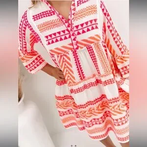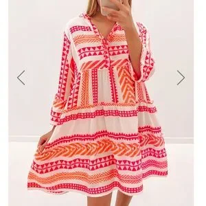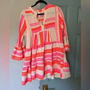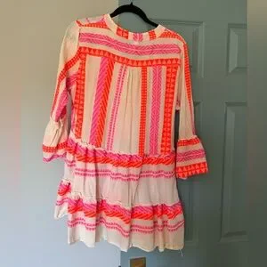 Breezy comfy cotton mini dress, can also be worn as a swim cover up! The neon pink and orange pop against the whjte. Purchased in Italy. Washed, but never worn. Similar to the Ella Dress by Devotion Twins, sold at Anthropologie.