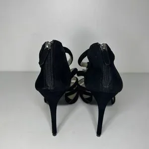 Coach Black Velvet Stiletto Holiday Heels With Silver Metal Bows sz 8.5