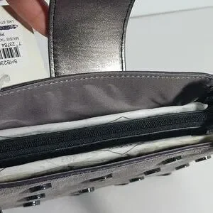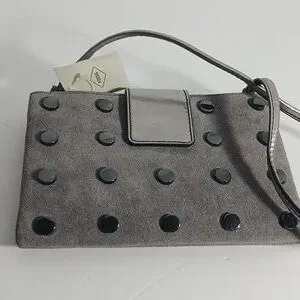 Fossil Maisie Tab Leather Crossbody Pewter Bag Gray Silver