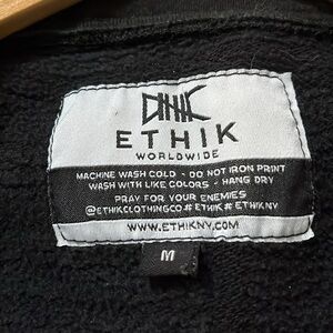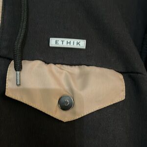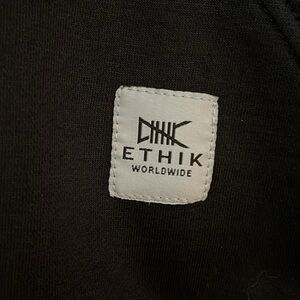 Men’s size Medium ETHIK hoodie. Black with tan accents