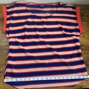 Old Navy Orange and Blue Striped Cuff Sleeve Blouse