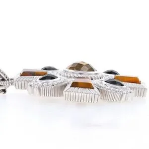 Add a touch of elegance to your jewelry collection with this stunning Judith Ripka cross pendant. Crafted from 925 sterling silver, this pendant features a beautiful combination of gemstones including natural citrine, tiger's eye, and onyx. The pendant is designed in a statement style that is perfect for any occasion.