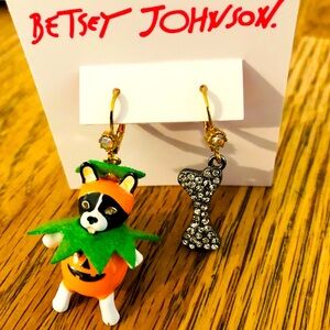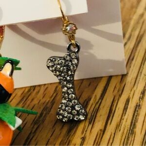 Authentic Betsey Johnson Earrings - Dog In Pumpkin Costume & Rhinestone Bone NWT
