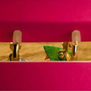 •Dog Measuring 1-1/2” x 1”, Metallic Body, Green Felt Hat & Neck Piece, Rhinestone Eyes