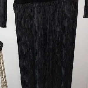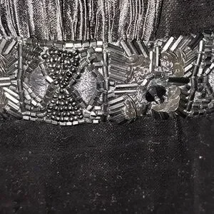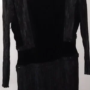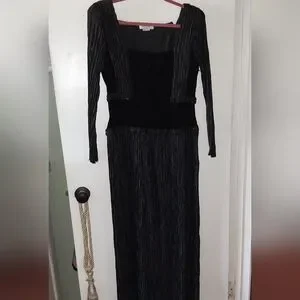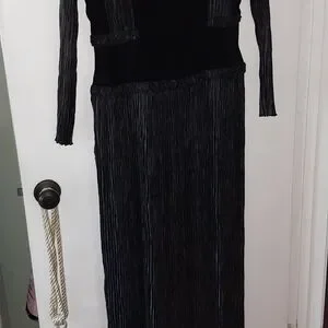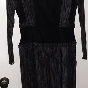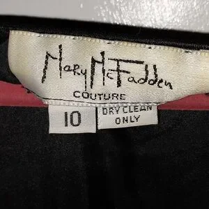 absolutely gorgeous silk, velvet and crepe dress. had custom beading, fab neck line, shoulder pads, long flowy skirt. dry clean only. ladies size 10. Vintage Mary McFadden Couture.