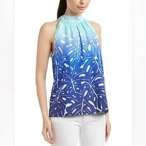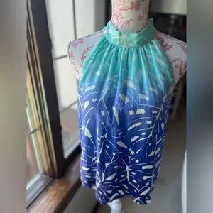 Vineyard Vines Aqua Blue white printed cotton-silk tie halter top size 2