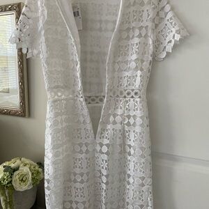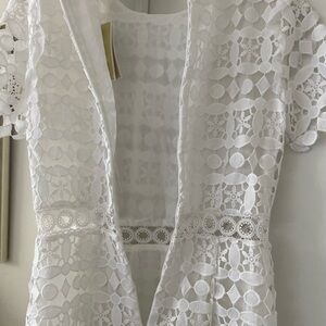NWT Michael Michael Kors White Geo Lace Pencil Dress, Size 4