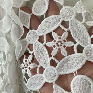 This stunning Michael Michael Kors pencil dress in white is a must-have for any fashion-forward woman. The dress features a geometric pattern on the lace fabric, with a round neckline and short sleeves. The zip closure adds a touch of convenience, while the cut-out feature adds a trendy touch. Perfect for both casual and party/cocktail occasions, this dress is made of 100% polyester and is fully lined. The size 4 regular dress is designed to fit comfortably, and the shoe size is not specified. The dress is ideal for the summer and spring seasons and is categorized under dresses, women's clothing, women, and clothing, shoes & accessories. Measurement: underarm to underarm 17 inches, waist 28 inches, hip 34, length 34 inches. Fully lined.