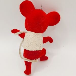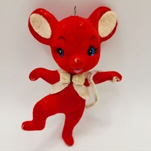 Vintage Red Flocked Mouse Christmas Ornament 3.75"