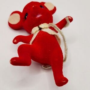 One Vintage Flocked red mouse ornament