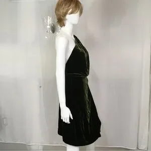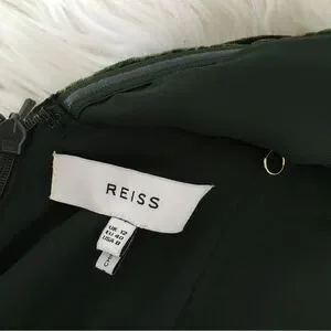 Reiss EDEN Green Velvet One Shoulder Evening Cocktail Midi Dress Size 8