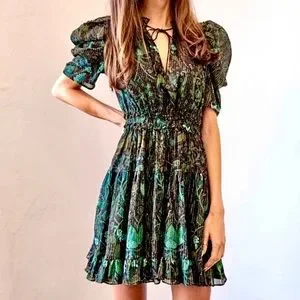 ๐บ๐HP๐๐บ NWT Ulla Johnson Ada Chiffon Mini Dress Rainforest