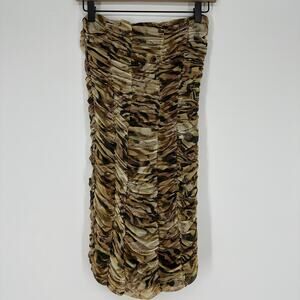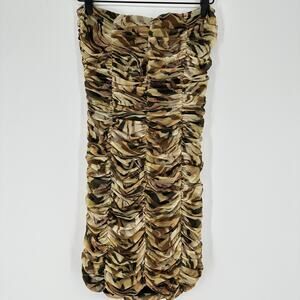 Topshop Bandeau Strapless Ruched Bodycon Neutral Mini Dress New Womens Small