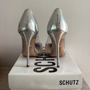 Schutz transparent with crystal toe and silver heel sz 8.5