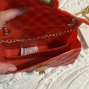 Vegan Women’s Purse Crossbody Orange With Gold Chain Quilted 7X4 Inches